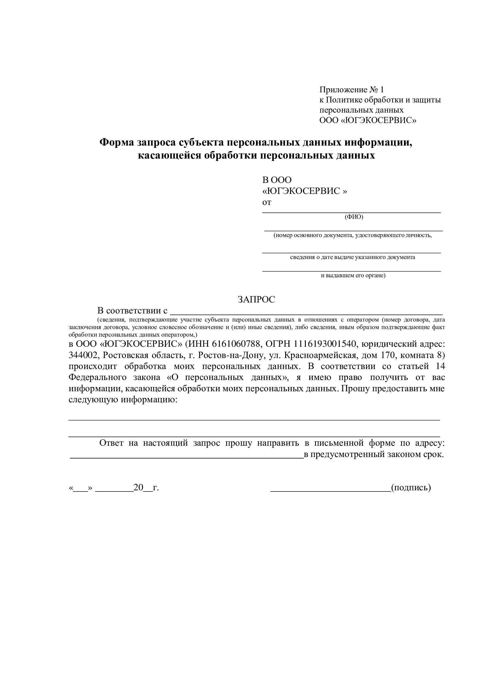 1.4.5. Субъект персональных данных имеет право обжаловать действия либо бездействие Общества, обратившись в уполномоченный орган по защите прав субъектов персональных данных (территориальное подразделение Роскомнадзора).